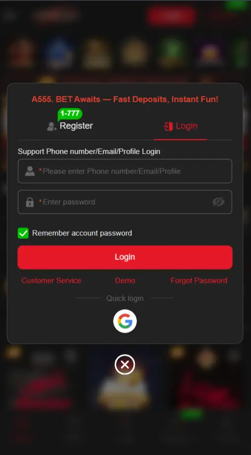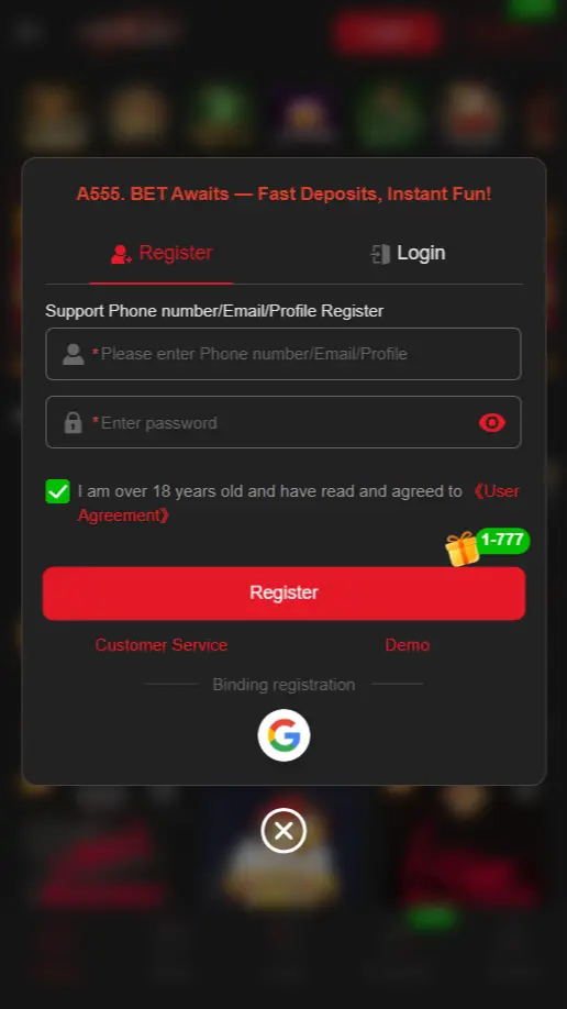Register on A555 Game