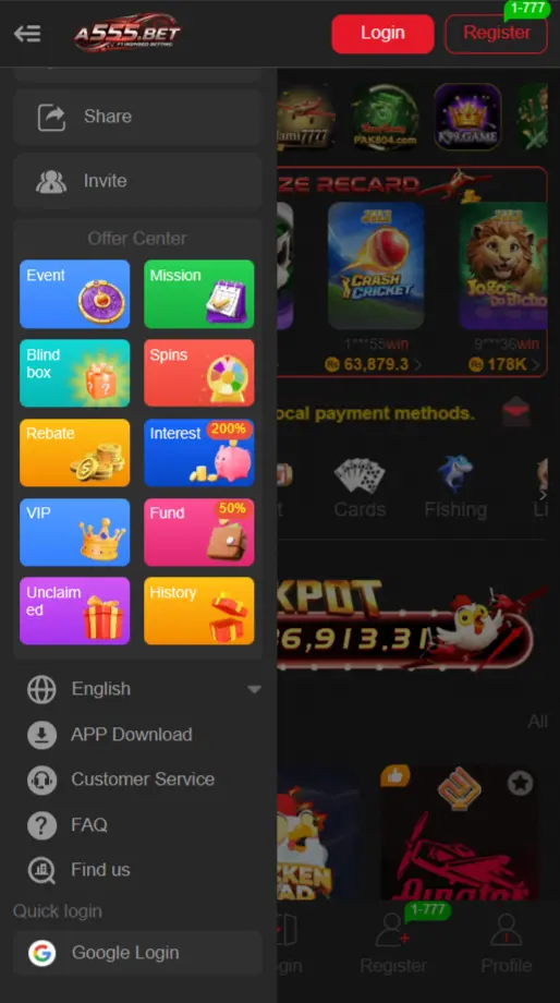 The app also includes wallet management, bonus offers, referral rewards, and secure deposit and withdrawal options. All these elements make A555 a convenient option for users looking for entertainment along with earning opportunities.