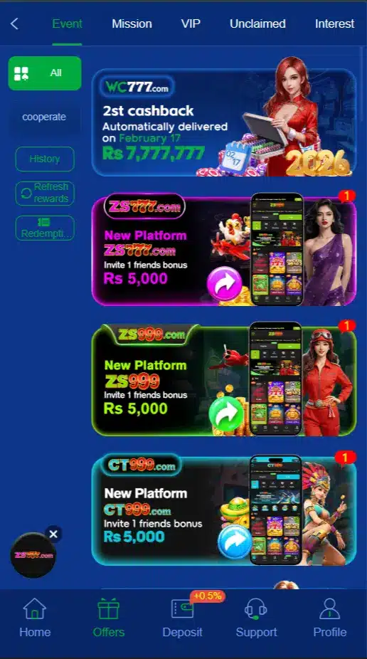 Occasionally, special events and limited-time challenges appear. During these periods, reward multipliers or cashback offers may be available.